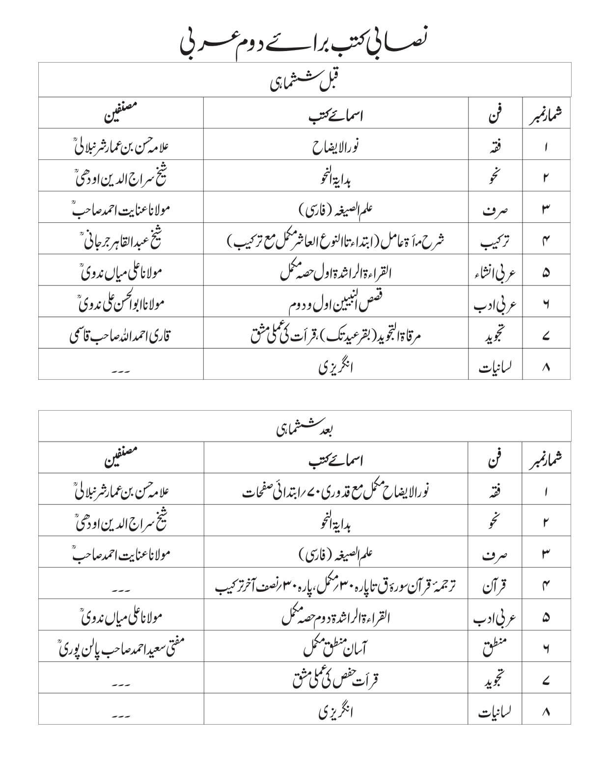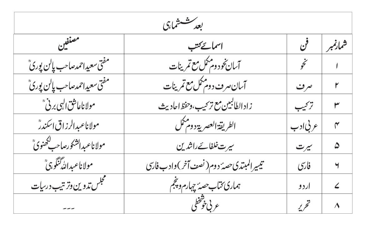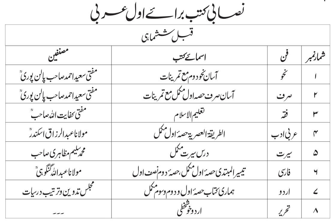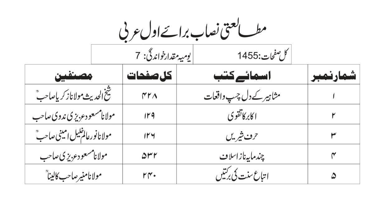 ٭اول عربی میں داخلے کیلئے اردوسے واقفیت شرط ہے۔