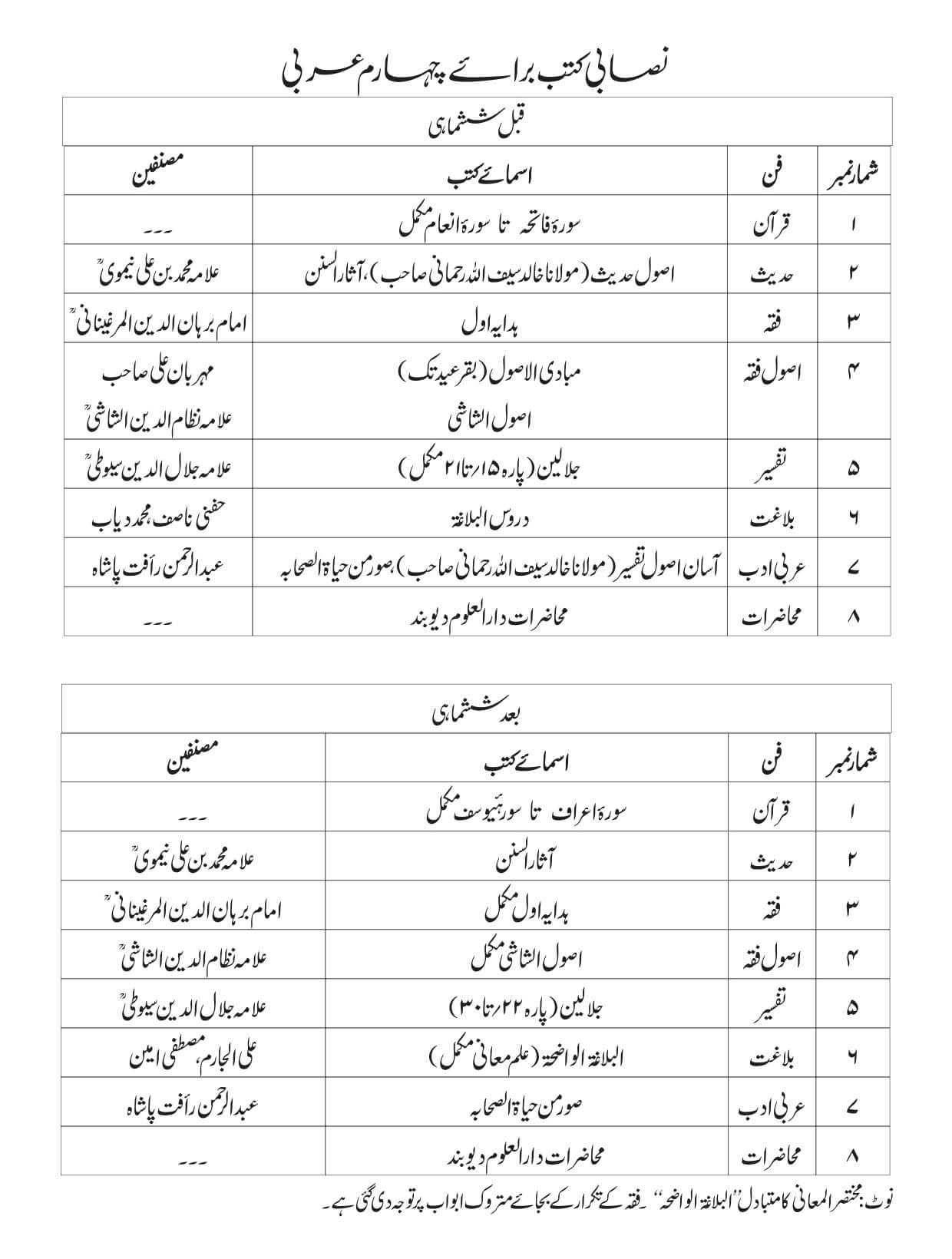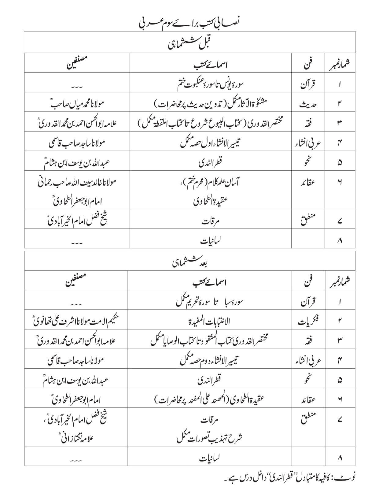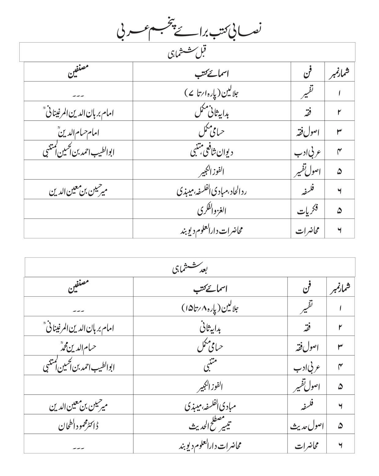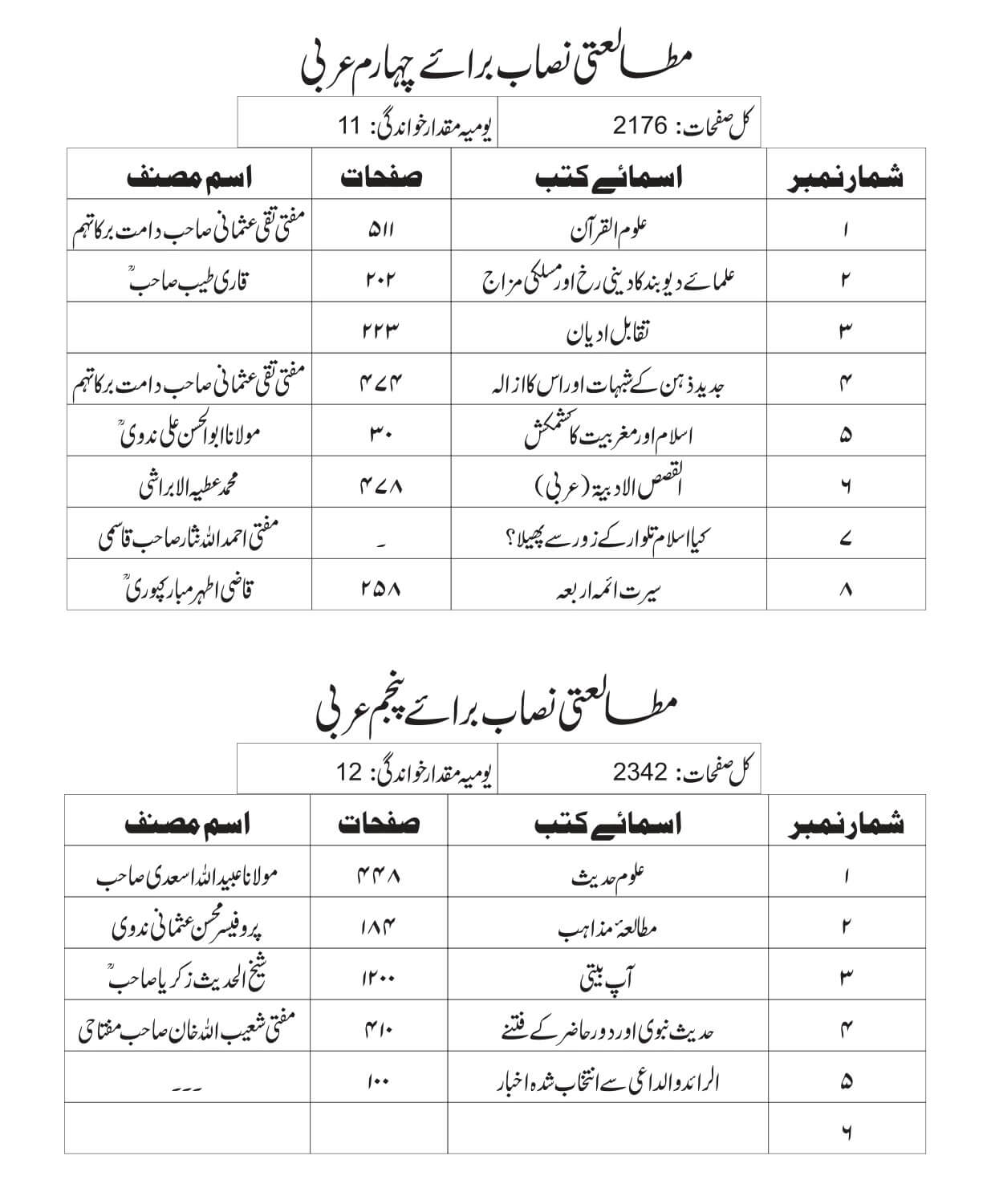 ٭اول عربی میں داخلے کیلئے اردوسے واقفیت شرط ہے۔