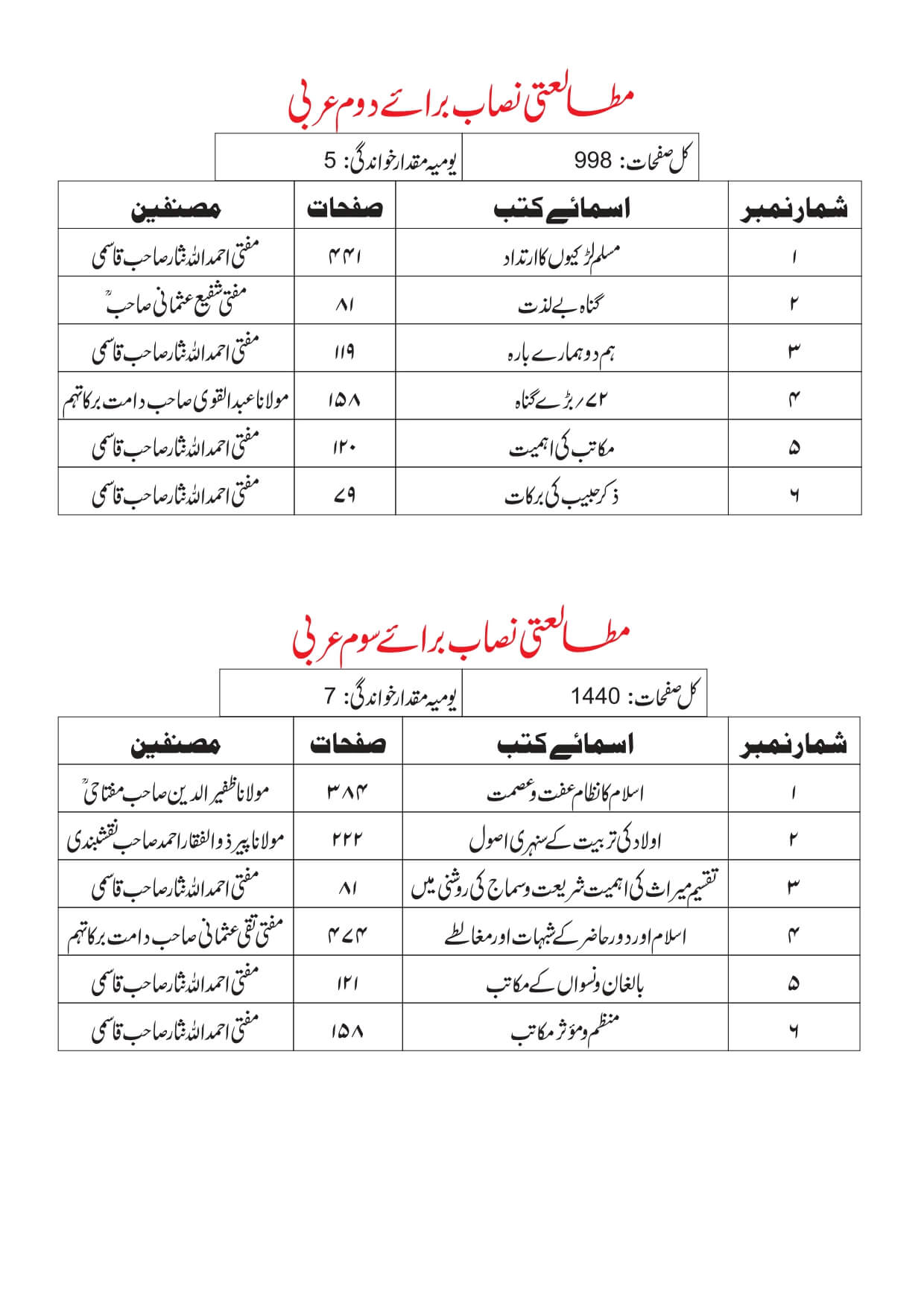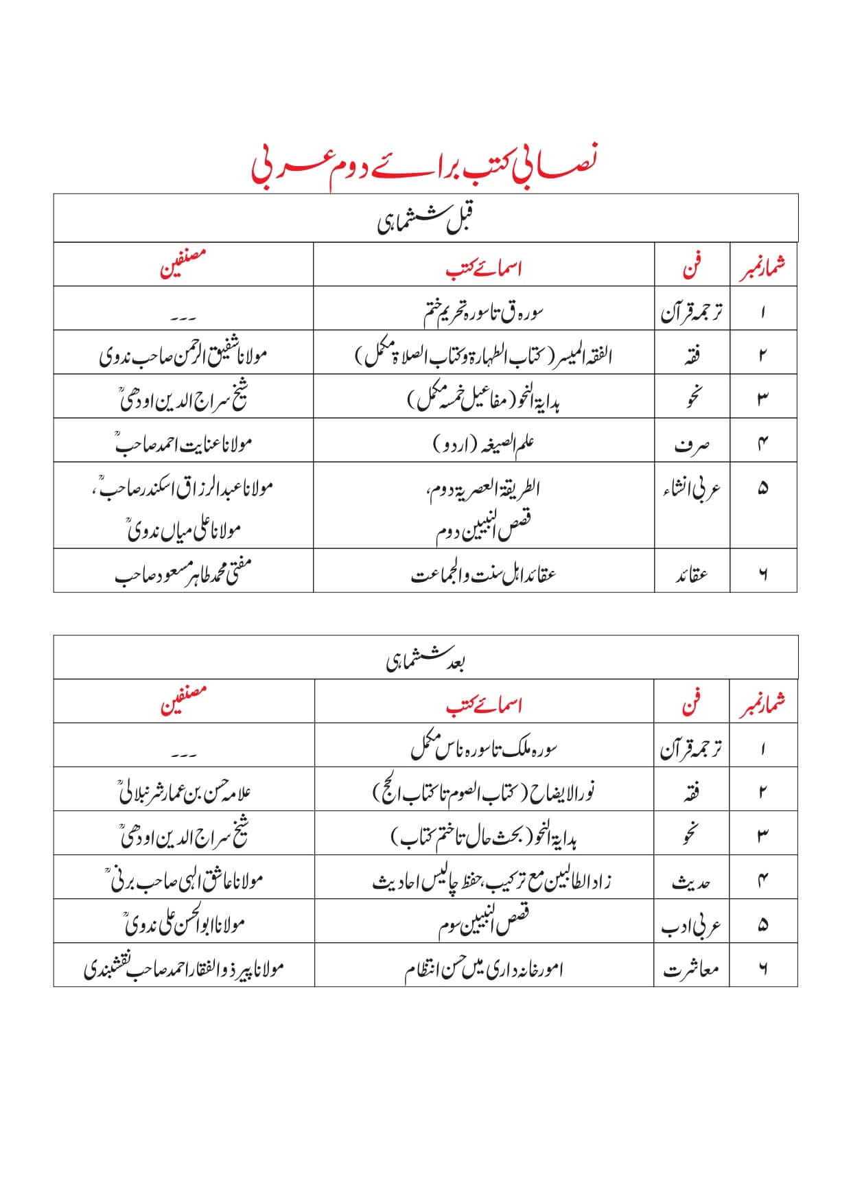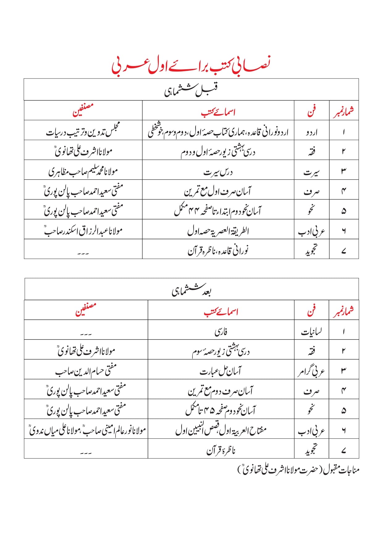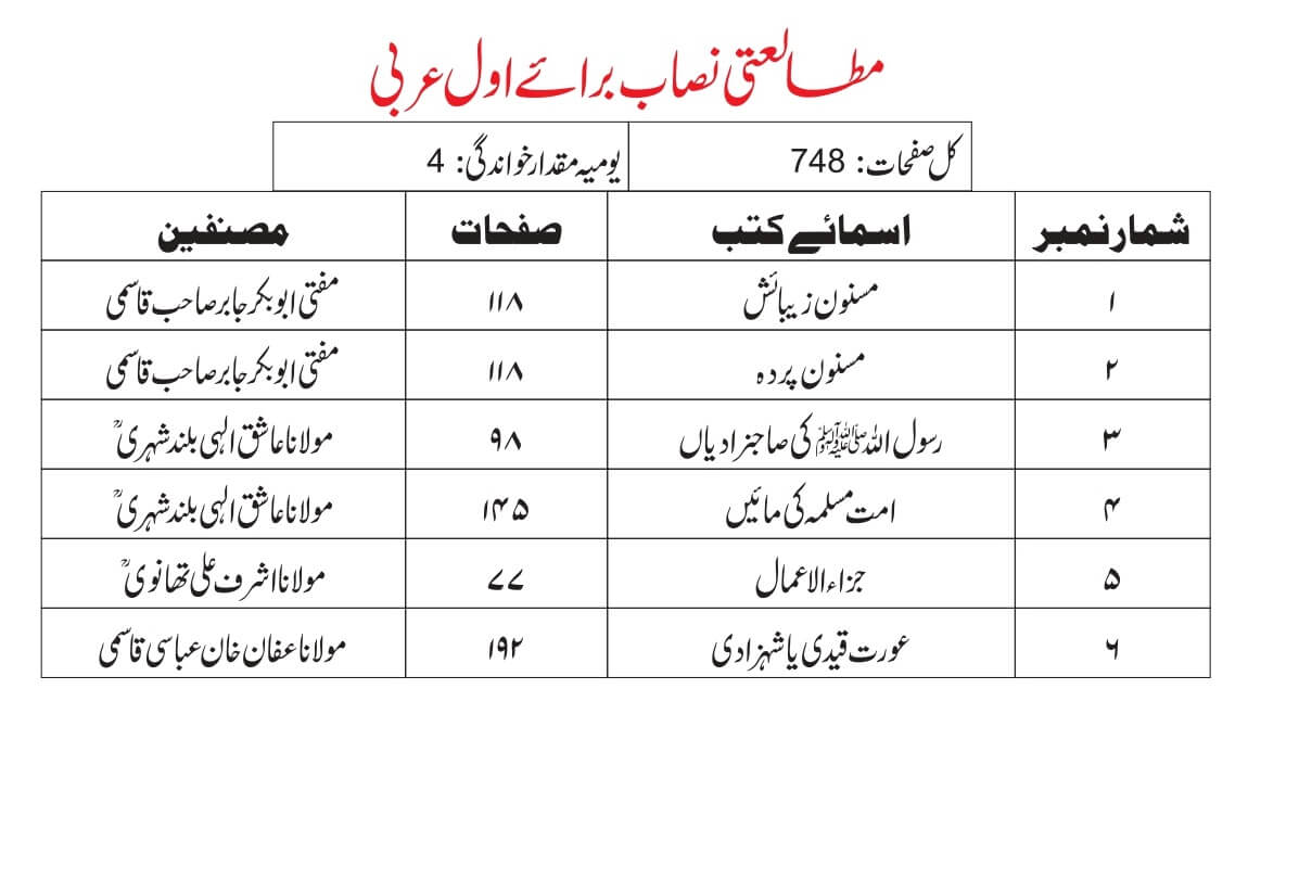 ٭ اول عربی میں داخلے کیلئے اردوسے واقفیت شرط ہے۔